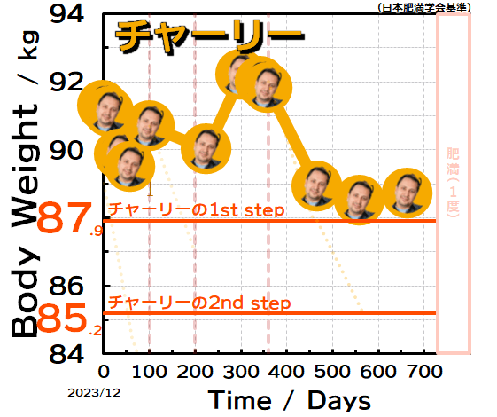 悠久のひとときは きっと永遠の時間。ただの「寿命」ではなく、心身ともに健康的に生きることのできる寿命、すなわち「健康寿命」を延ばすためのはじめの一歩としてBBodyMMassIIndexを可視かし化してみました。可視かし化すること。それは自分自身を知ること。ちょっと覗のぞいていってください。 「歴史」をつくっていこうぜ! BMIと体重の時間依存性 NOZが肥満(3度)から 普通体重に! チャーリーがまさかの 減量中!? どんな生活してたの? 2021年10月~現在 NOZの経験談 「食事制限」「歩く」「運動」 2023年12月~現在 チャーリーの宣言 「2024年3月末までに86kg」 チャーリーさん 減量成功 To be continued ...? 参照 BMI 肥満の健康障害に対する国際的な学問的関心の高まりのなか、単なる「肥満」と「肥満症」の概念を明確に定義し、国際的にも注目されています。 CAOのひとこと われわれは、「肥満」からの脱却を試みます!!!みんなも応援してね!!! グッズ (SUZURI ) ファンレター (OFUSE ) 悠久のひとときについて ポストする シェアする Post このページの 著者 ライター BMIを心配するお年頃のライター 悠久のライター ふかちゃん fam CAO 謎解きとゲーム大好き。日々、CEOからお願いされたことを実装し続ける。その先に、悠久のひとときがあることを信じて。 ほかの記事も 最高のひととき グループ 財務報告 ―結局、うまくいってるの? たぶん、ダメだよね。。。 01/12/2020 03/11/2025 おそらく 悠久のひととき 謎 Q0020_YouTubeVer 謎解きの超初歩的なものを集めました。ぜひ、解いてみてください。 13/07/2021 02/05/2024 ノズゴロ【日本史】 604年の出来事【日本史】;憲法十七条の制定 604年 群れ寄る民に(憲法)十七条 憲法十七条の制定 25/07/2023 28/12/2024 ノズゴロ【日本史】 723年の出来事【日本史】;三世一身法の発布 723年 なにさ結局国の物じゃん 三世一身法の発布 27/07/2023 28/12/2024 謎 Q0037_YouTubeVer 「謎解き」の超初歩的なものを出しました! ぜひ、解いてみてください! 30/07/2021 03/05/2024 ノズゴロ【日本史】 1488年の出来事【日本史】;加賀の一向一揆がおこる 1488 いよー母も一緒 加賀の一向一揆がおこる 31/10/2023 28/12/2024 ノズゴロ【日本史】 764年の出来事【日本史】;恵美押勝(藤原仲麻呂)の乱 764年 中国風になろうよ 恵美押勝(藤原仲麻呂)の乱 28/07/2023 28/12/2024 謎解き ユメノシマから謎解きを。【WEB謎】 あなたの知らないユメノシマで謎解きをつくりました。 05/10/2021 01/05/2024 謎 謎解き ―パズル編― 謎解きには5ジャンル程度あるようです。そのなかのひとつ「パズル」の謎解きをご紹介します! 13/10/2022 06/11/2024 カテゴリー 謎解き 千夜千店 NOZ塾 HOME >> グループ >> Body Mass Indexと 私と 悠久のひとときと